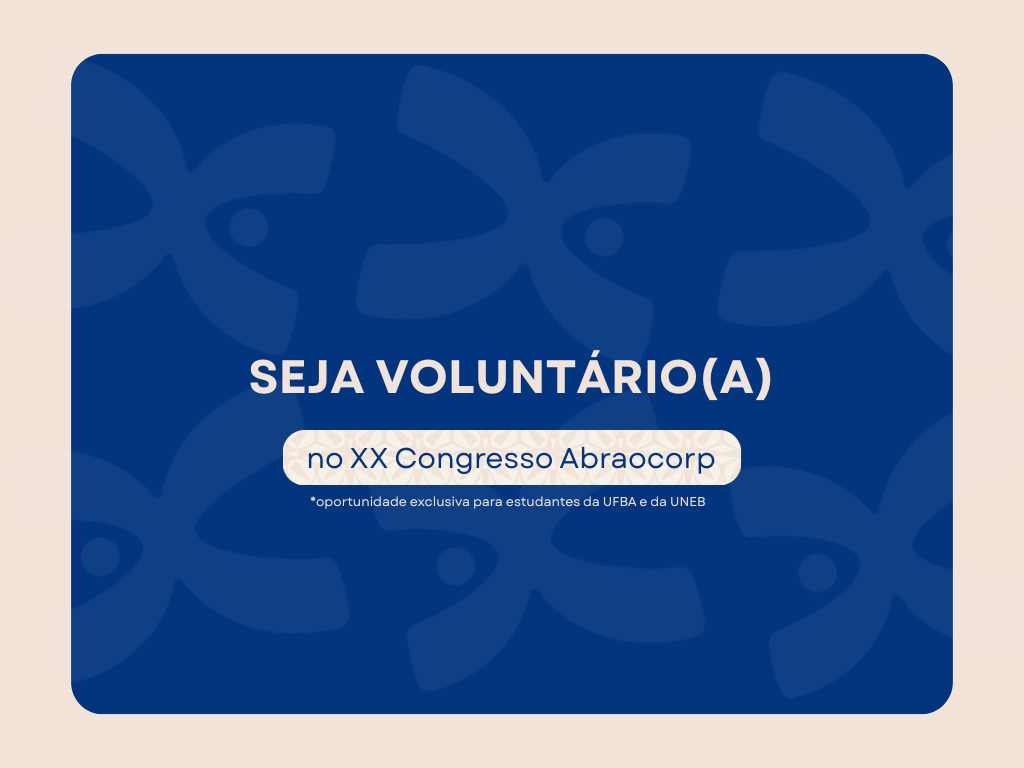 Estão abertas, até o dia 20 de abril, as inscrições para estudantes da Universidade Federal da Bahia (UFBA) e da Universidade do Estado da Bahia (UNEB) que desejam atuar como voluntários(as) no XX Congresso Abrapcorp