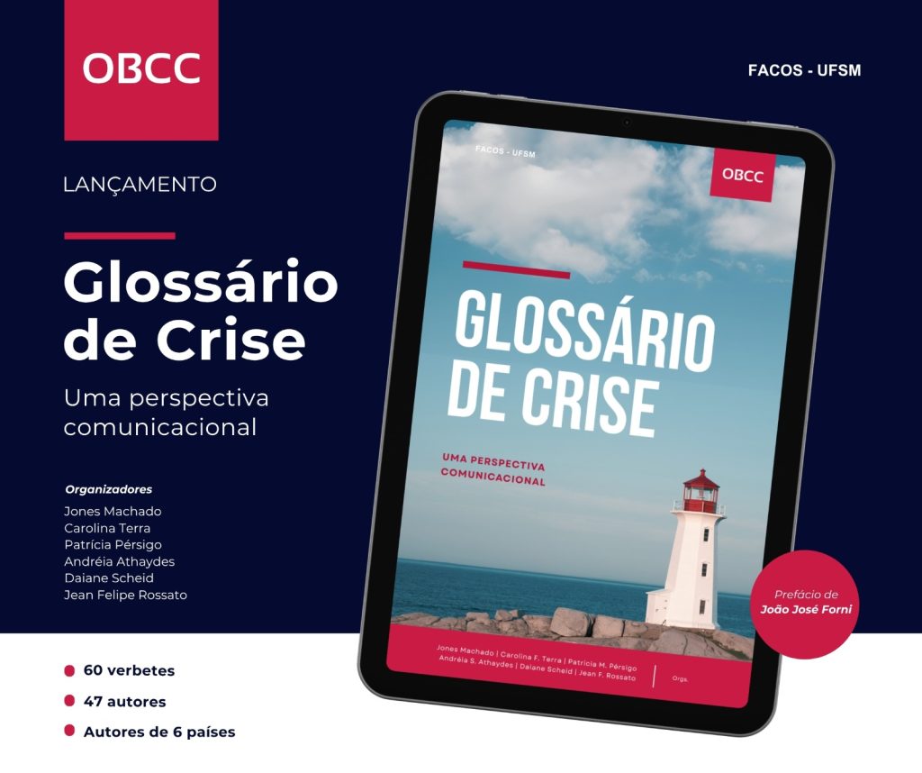 Na última semana, o Observatório Brasileiro de Comunicação e Crise (OBCC) lançou o e-book do Glossário de Crise – material que já vinha sendo desenvolvido e compartilhado no site do OBCC. A publicação conta com 60 verbetes idealizados por especialistas de 6 países.